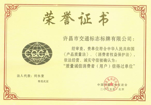 公司質(zhì)量誠信消費者(用戶)信得過單位